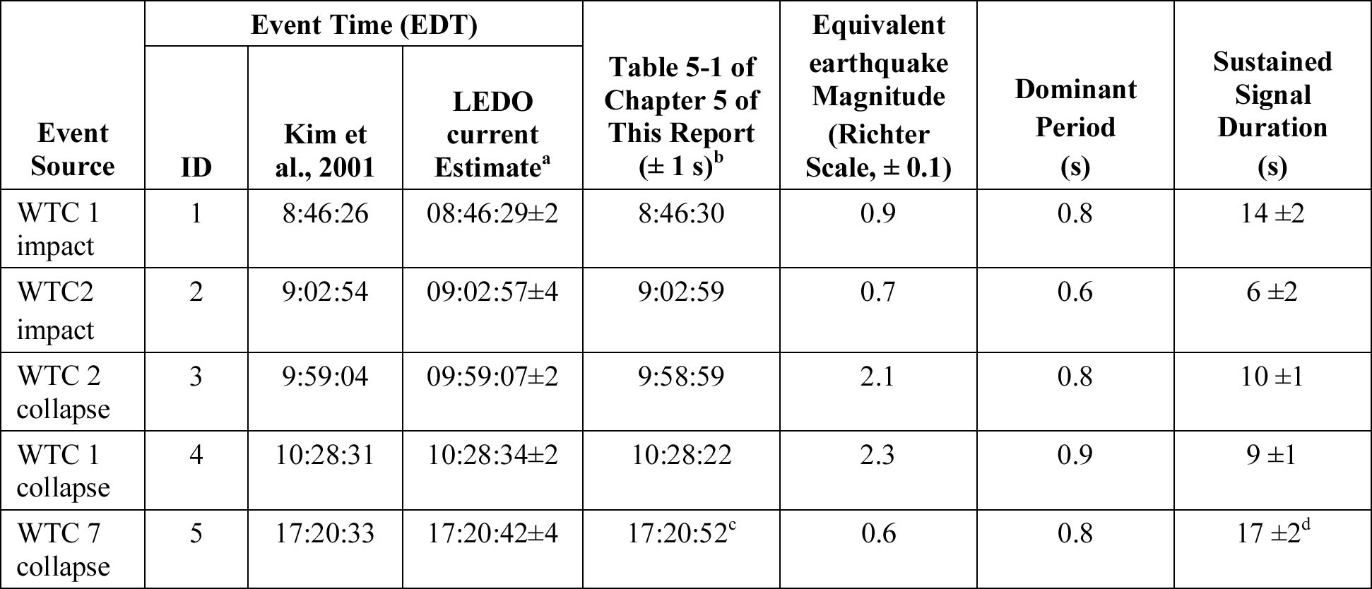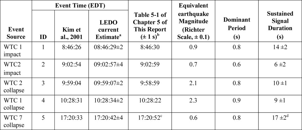 The data presented by NIST in Table B-2 shows a dominant period lasting 0.8 seconds. Collapse time Duration of signal Did the ground shake like raining dump trucks?