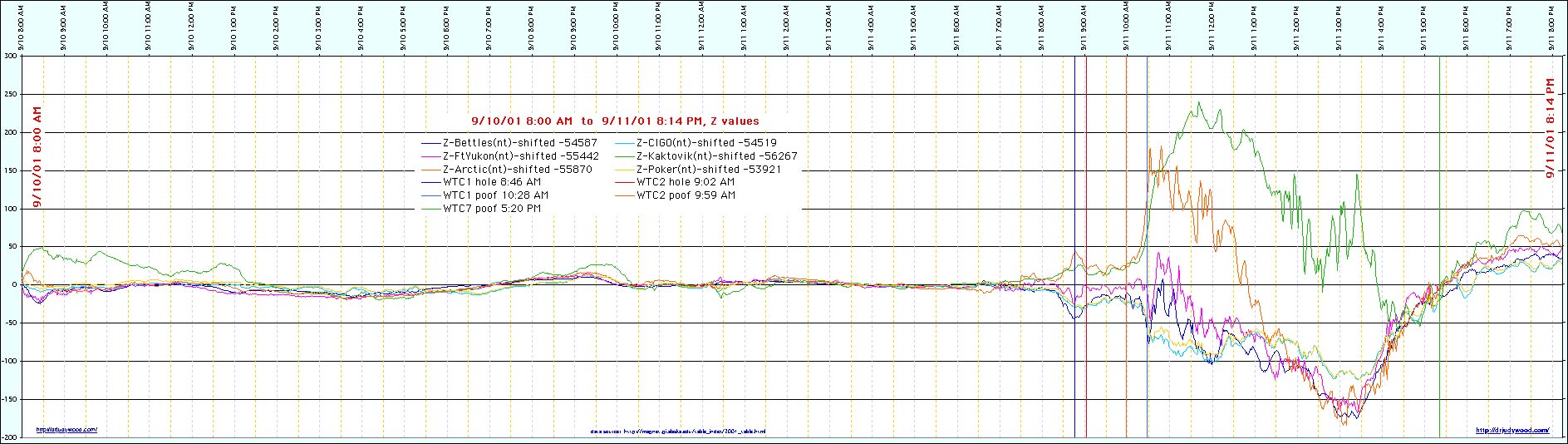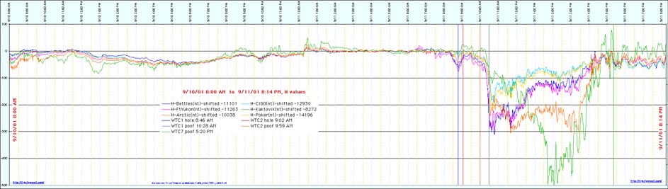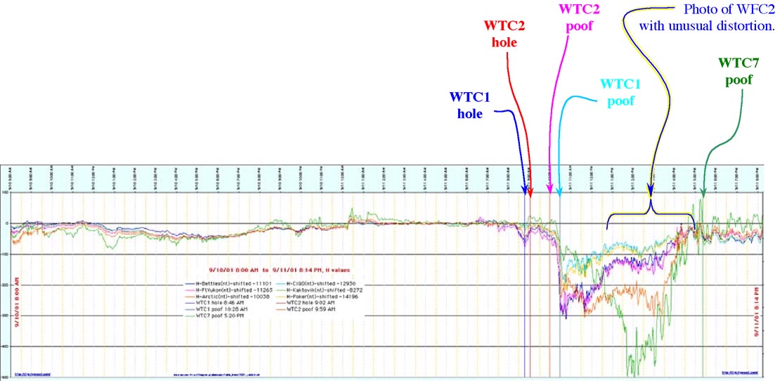 The impact of the debris from WTC7 registered an equivalent to 0.6 on the Richter Scale. This is the magnitude of a signal that might be expected if WTC7 had lost at least 99% of its mass, evenly, over the height of the building. Significant and important magnetometer data exists and must be included. That data consists in the following. [See data below.] Analysis of that data, in conjunction with seismic data results in important information that will cast doubt on the probable collapse scenario in NCSTAR 1-A. We anticipate that NIST may not use this data and that, instead, the failure to do so will have to await further proceedings, such as a Request for Correction. NIST is hereby placed on notice that the failure to include the data is inexcusable. Suggestion for Revision: Magnetometer + seismic + "Our seismic & magnetometer evidence" |