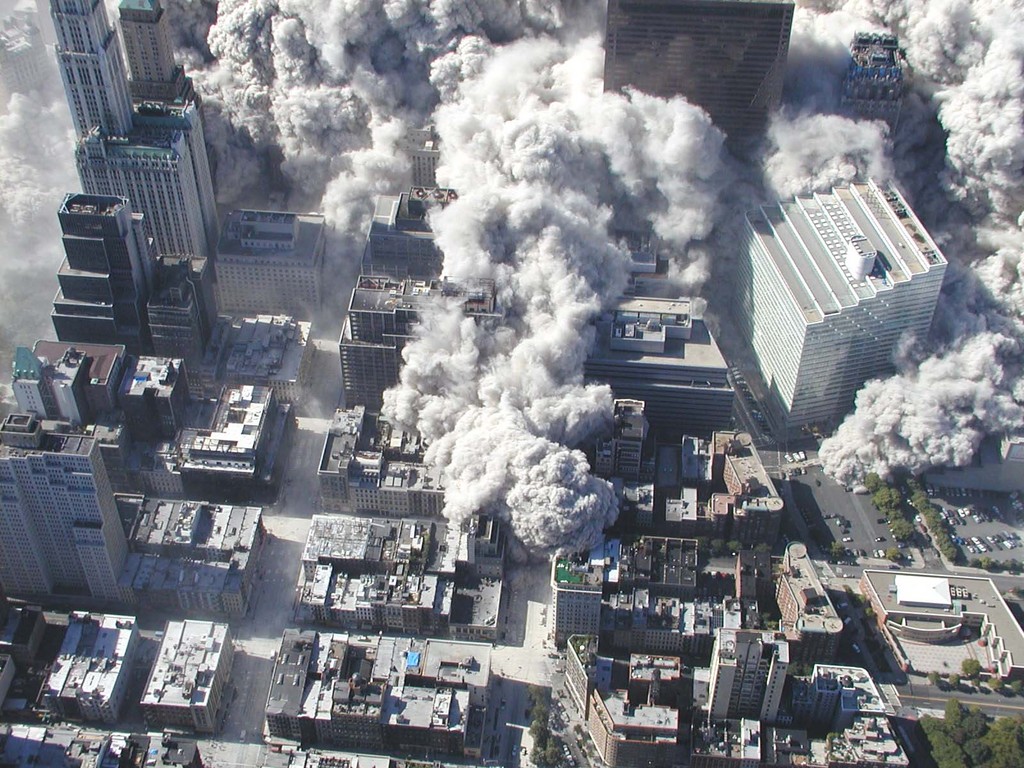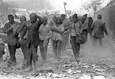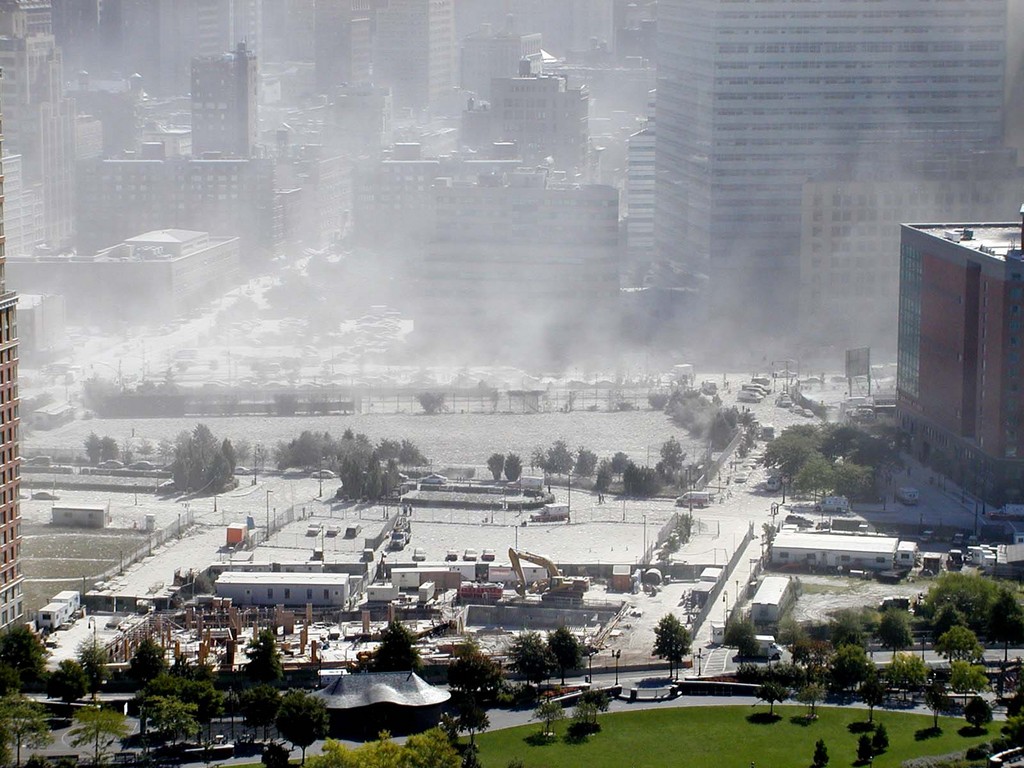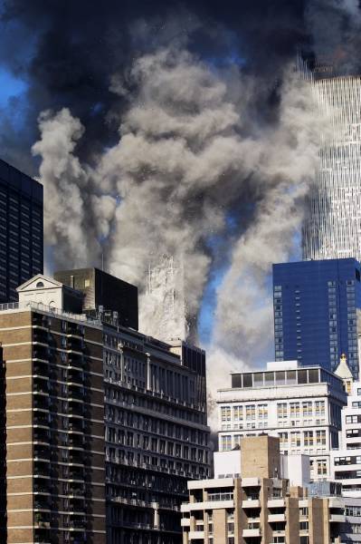 Figure 26. The cloud from the destruction of WTC1 rolls toward the parking lot.