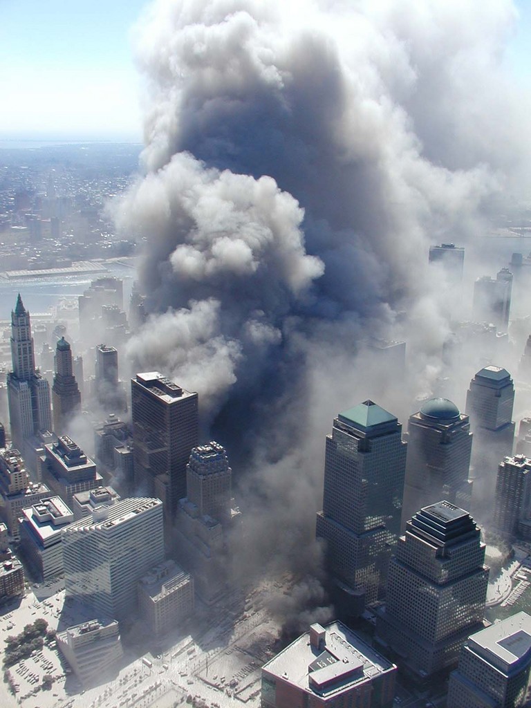 Figure 24. WTC1 is still standing, so this is cloud is flowing from WTC2. (9/11/01 entered) Source |