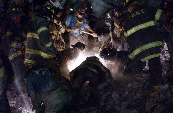 Workers at Ground-Zero in "fuming haze" Top