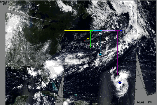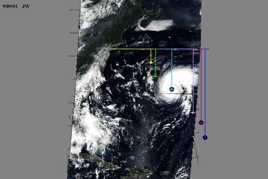 Figure 42. Hurricane Erin track. Hurricane Erin was the closest to NYC on 9/11/01. Why didn't we hear about this in the morning news? Source: |