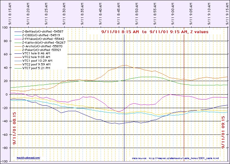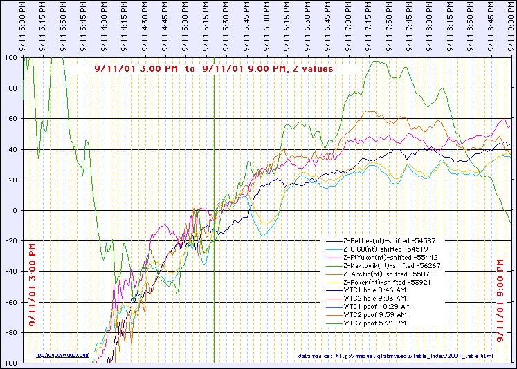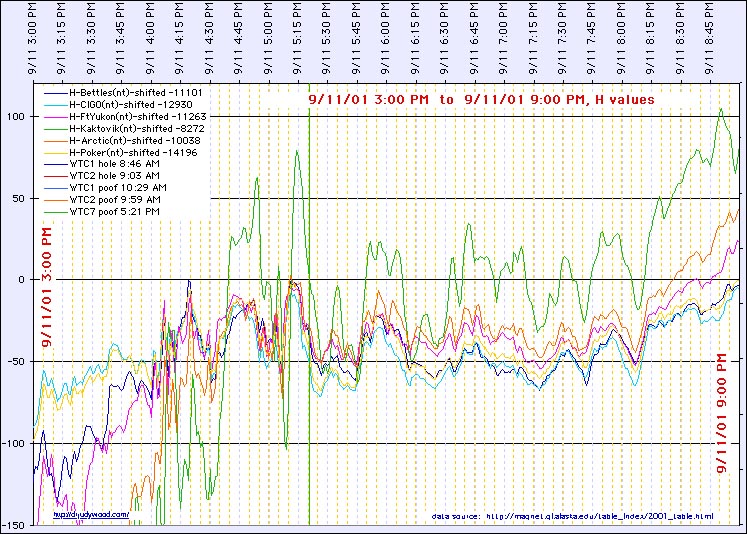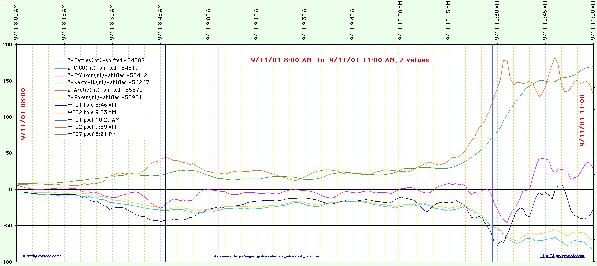 Jump to Magnetic Anomalies on 9/11/2001 Jump to Magnetometer Readings (normalized) (14 hours) Jump to Magnetometer Readings (normalized) (36 hours) Jump to Magnetometer Readings (normalized) (96 hours = 4 days) Jump to xxxx |