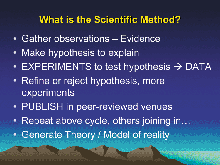 Steven Earl Jones, a recently retired BYU professor of physics, talks a great deal about "The Scientific Method." For example, Dr. Jones presents this slide: