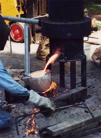 Figure 2. These molten metals may be aluminum with a mix of slag or iron with a mix of slag or... ( Audio of Jones saying, "When it's flowning it looks kind of "silvery," but then goes on to contradict that statement. So, he can't apparently tell what material it is from the color.)