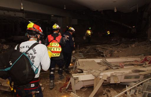 Dr. Griffin is asked about the size of the pile. Again, Dr. Griffin indicates that the pile was 4-6 stories high. He admits that everything, save all of the steel was turned to dust. This includes cement, office equipment, desks, computers, toilets, etc. How could that be? Since available evidence shows that the debris pile was less than two stories in height and that the basements were left intact, it stands to reason that much of the steel was turned to dust as well. This is confirmed by analysis of seismic data that indicates that when compared to the King Dome, the ground shaking from the Twin Towers at a minimum should have been around a 3.8 based on the difference in mass. Further, based on analysis of the fall times, all of the debris would have had to have hit the ground at roughly the same time based on observable data that the building fell from the top and reached the ground in freefall time. That the bottom of the building did not disappear until immediately before all of the debris hit the ground, then all of the debris (if it was still intact) would have had to have hit the ground all at one time which should have crushed the basements (evidence to the contrary exists above) and cause very significant noise (also not evident) and tremendous ground shaking (again not evident). index