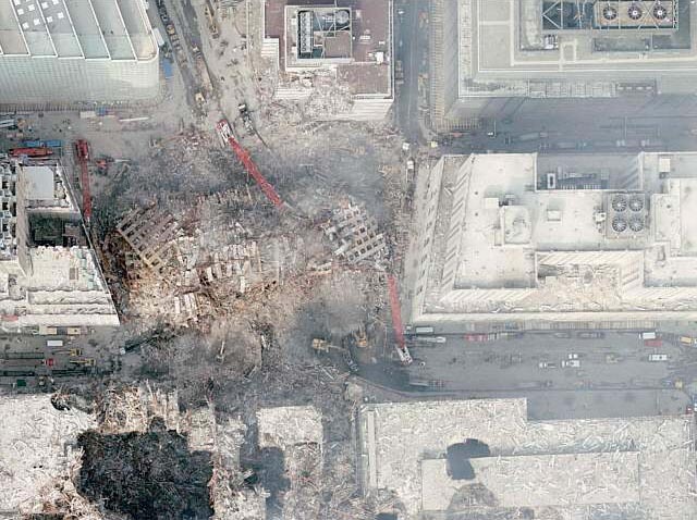 Figure 13. WTC7 left a bigger pile than either WTC1 or WTC2. Note how small the people are relative to the "pile."